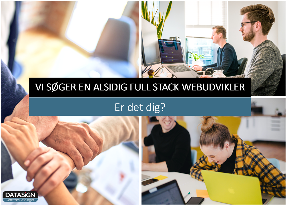 Som full stack softwareudvikler hos DataSign, bliver du del af et dygtigt team – der glæder sig til at byde dig velkommen. Du bliver en del en virksomhed, hvor der ikke er langt fra ide til handling. Dit nye job bliver på vores kontor i Kolding centrum – i lækre fysiske rammer, tæt på tog, motorvej og gågaden.