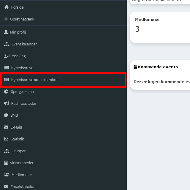 Vælg “Nyhedsbreve administration” i menuen.