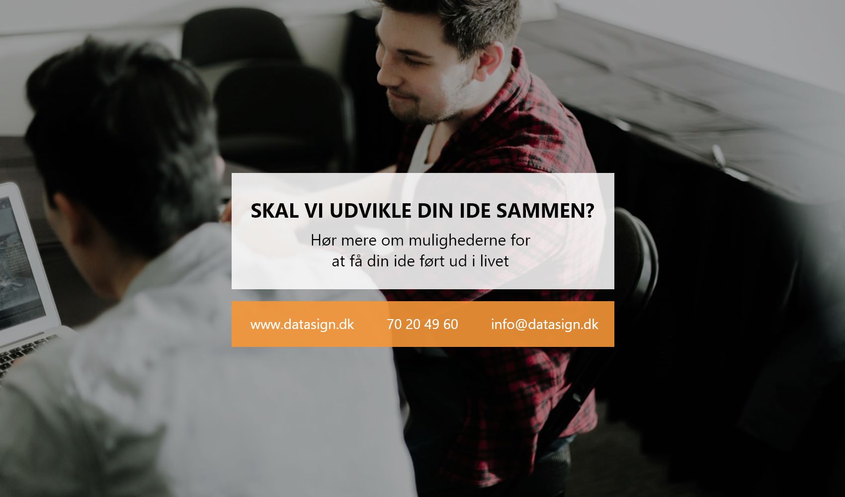 Browse rundt på hjemmesiden og lær os bedre at kende – derefter kan du ringe på telefon 70 20 49 60 eller skriv en mail til info@datasign.dk